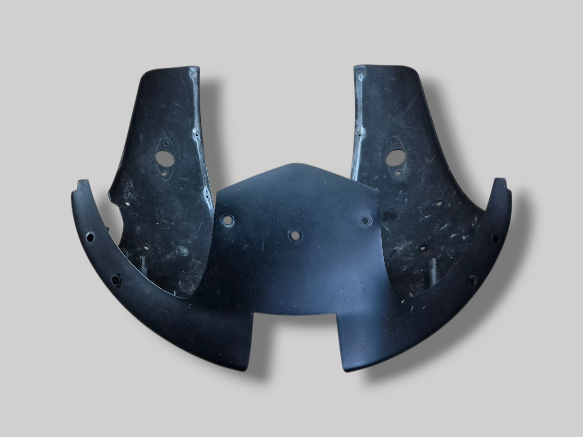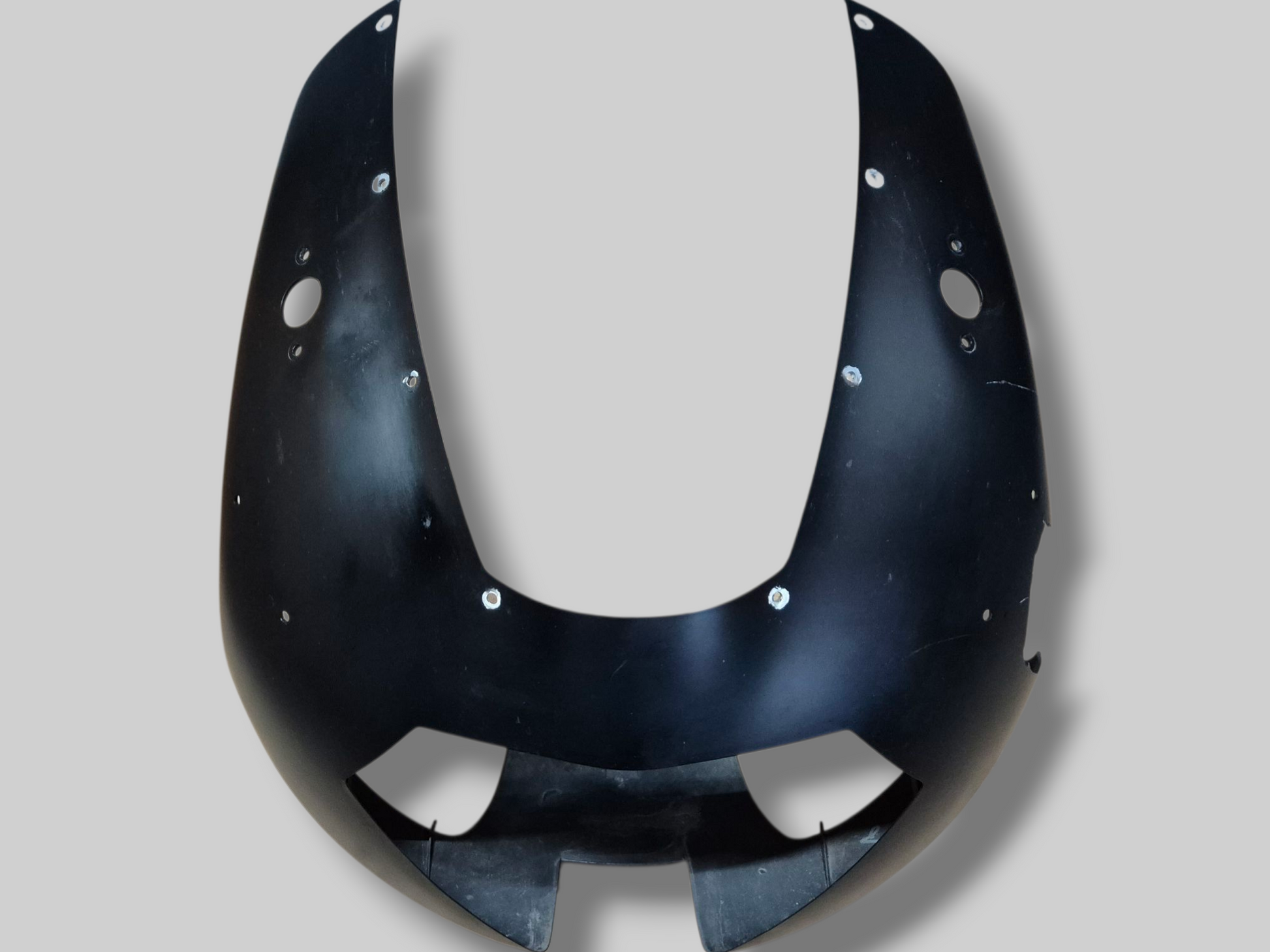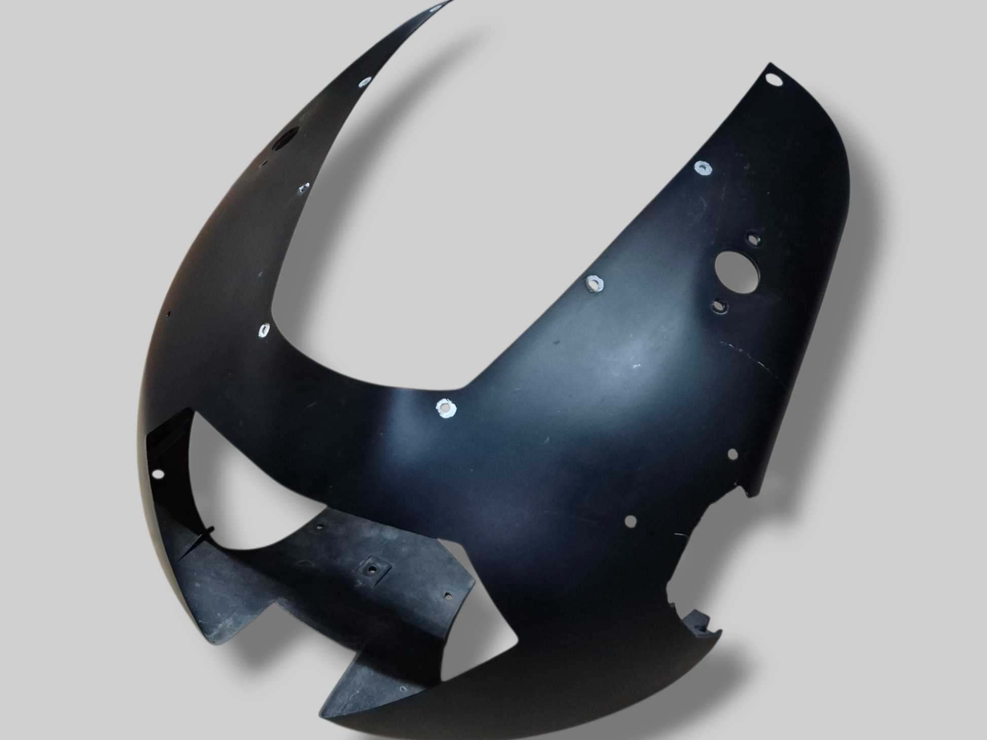 Conditie : Heeft linksboven naast de voorruit een barst. Heeft ook nog wat andere gebruikssporen. Bevestigingspunten aan de binnenkant gescheurd. Sticker in redelijke staat, maar heeft enkele lichte krasjes aan de rechterkant. Exclusief luchtkanalen