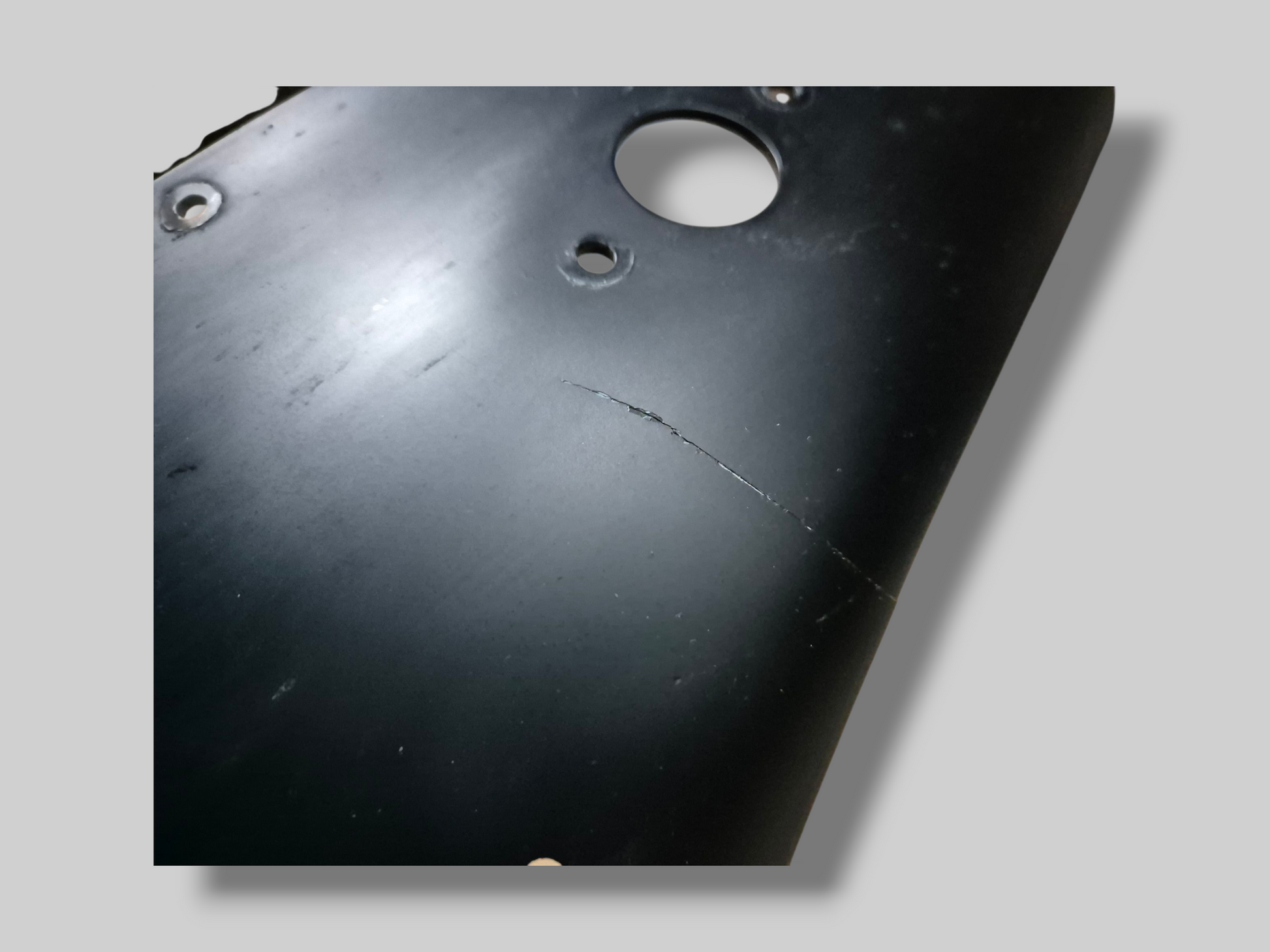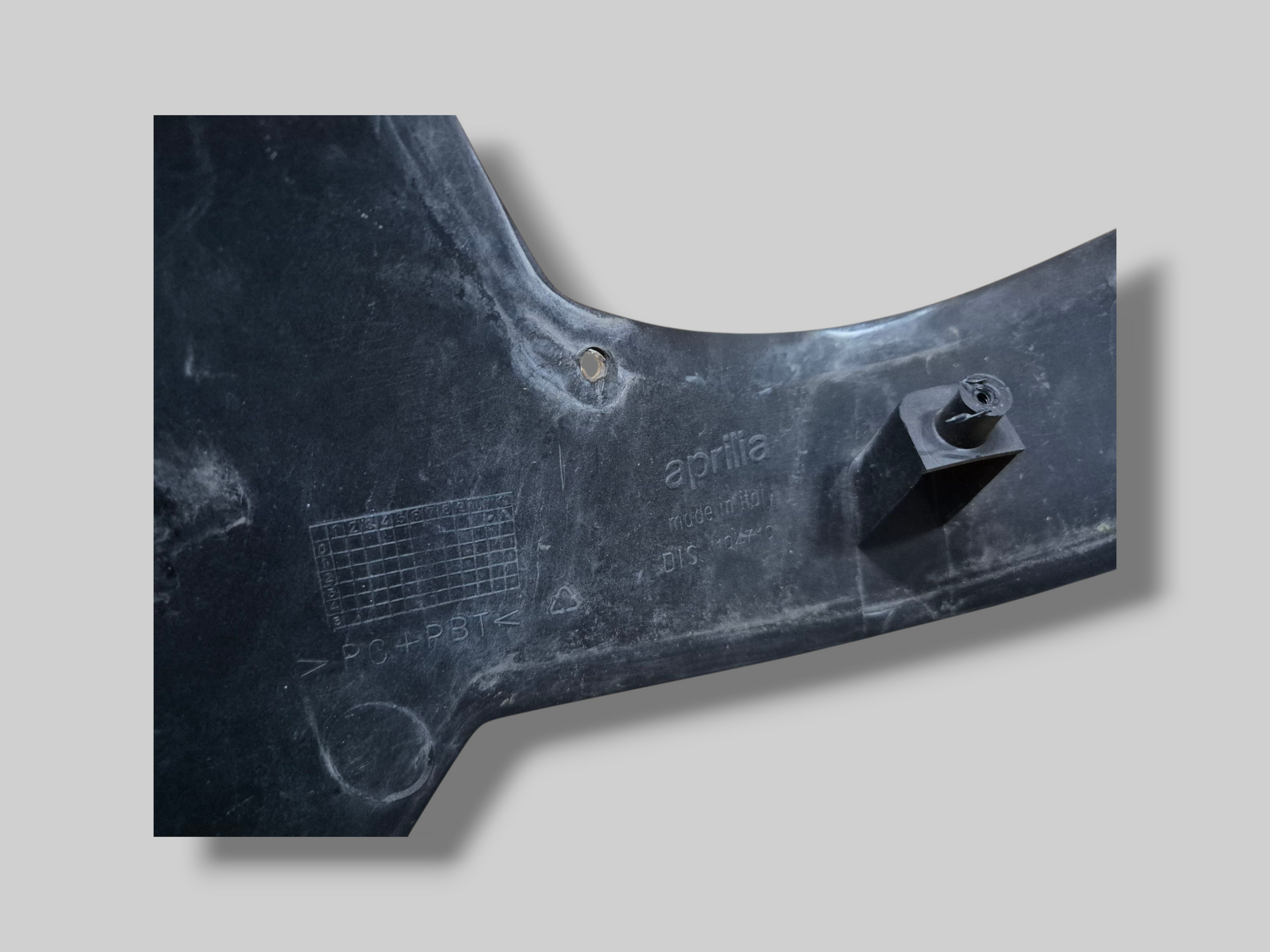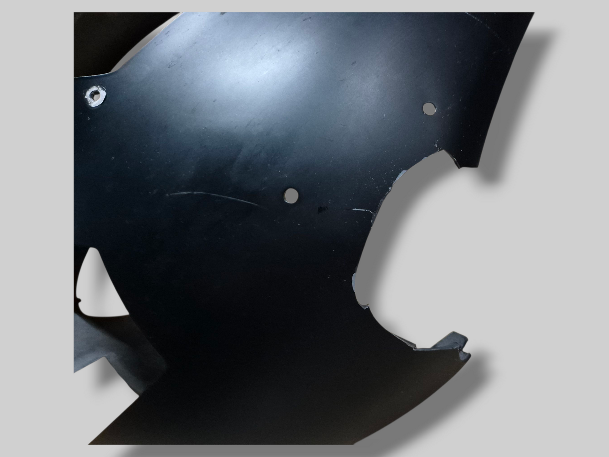 Conditie : Heeft linksboven naast de voorruit een barst. Heeft ook nog wat andere gebruikssporen. Bevestigingspunten aan de binnenkant gescheurd. Sticker in redelijke staat, maar heeft enkele lichte krasjes aan de rechterkant. Exclusief luchtkanalen