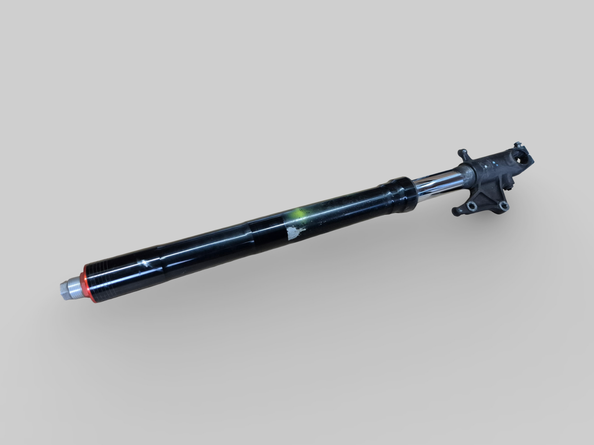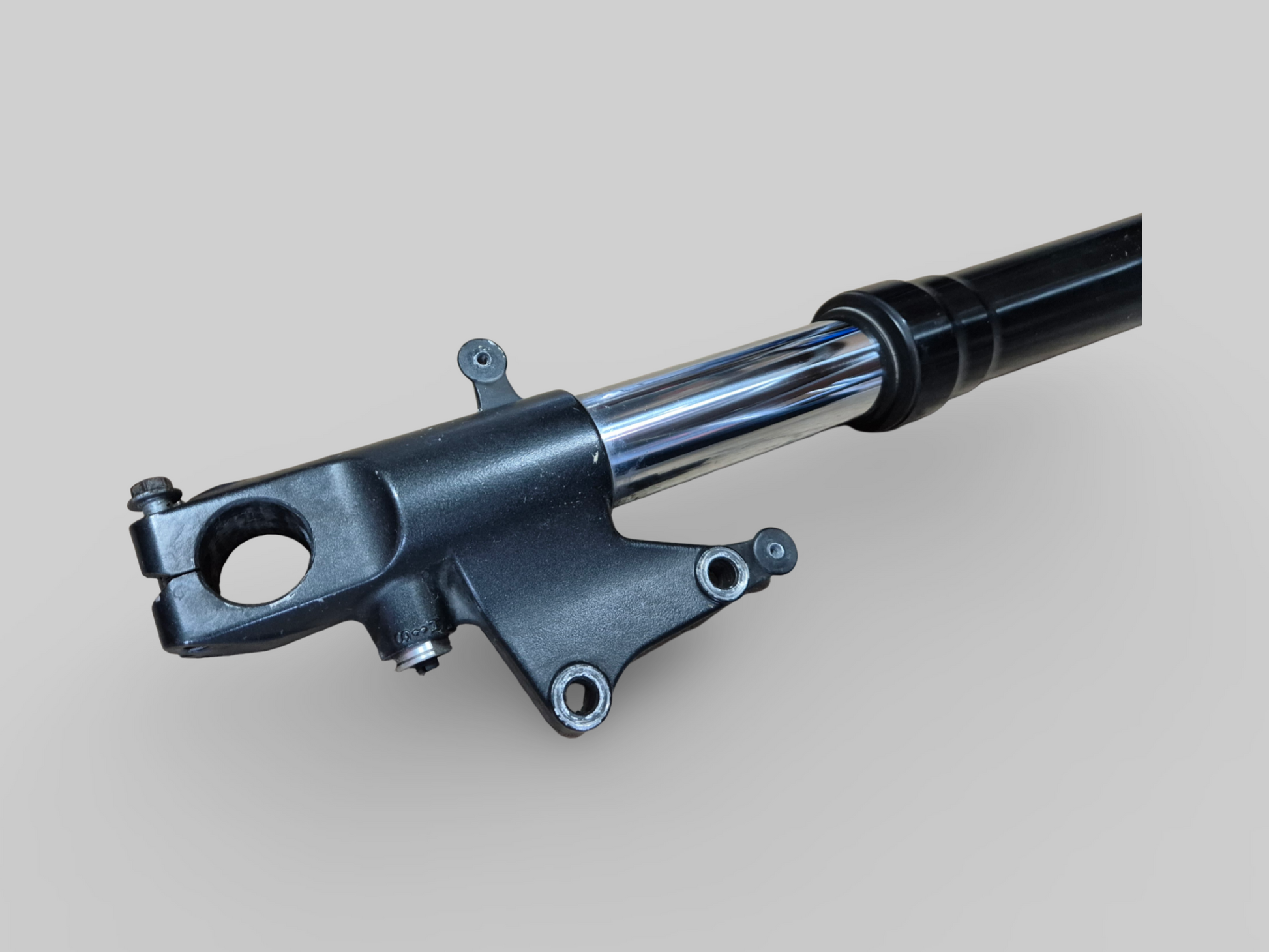 Conditie : Buitenpoot heeft corrosie, vorkkeerring lekt en schroef voor voorspatbord afgebroken. Maar verder is het recht en repareerbaar.